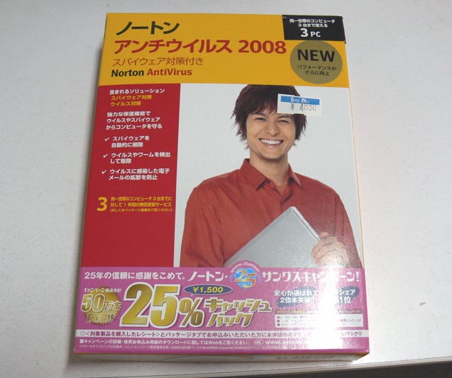 よく考えてみるとセキュリティソフトもVistaに対応してなかったのでNortonAntiVirus2008を、3台まで入るようです。 |